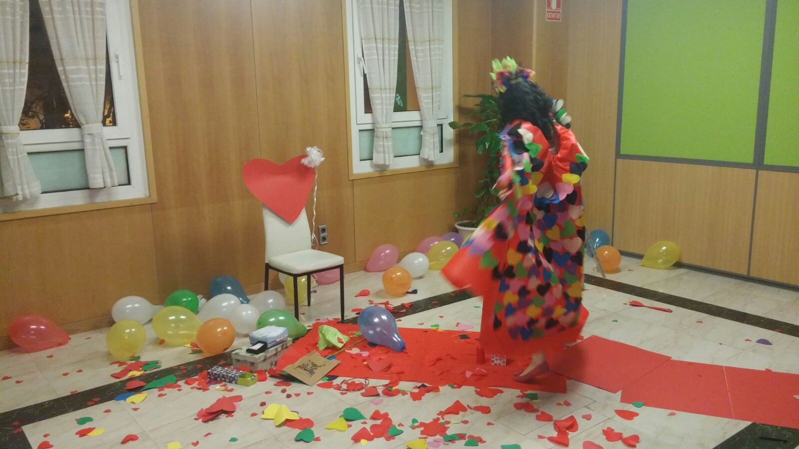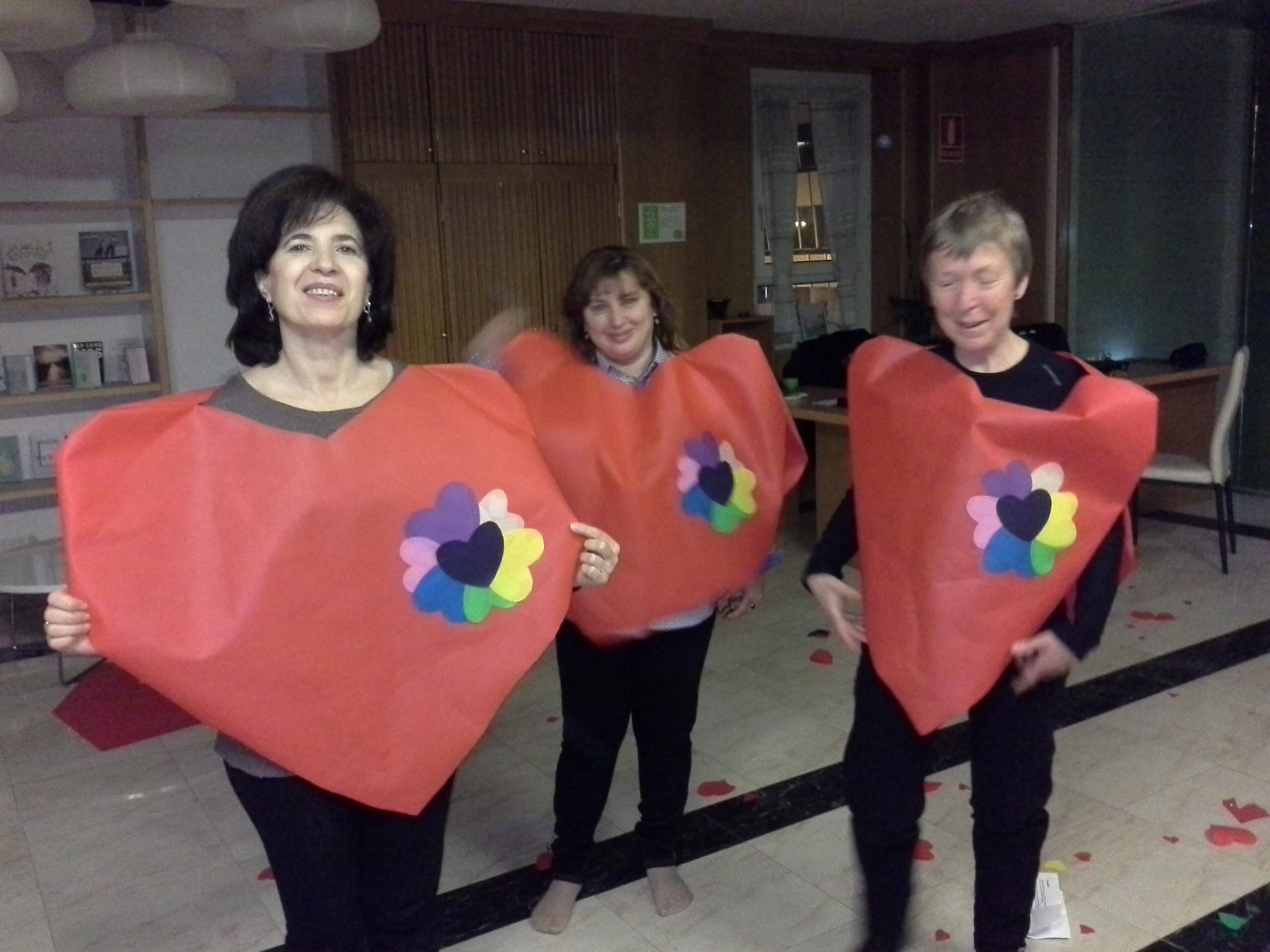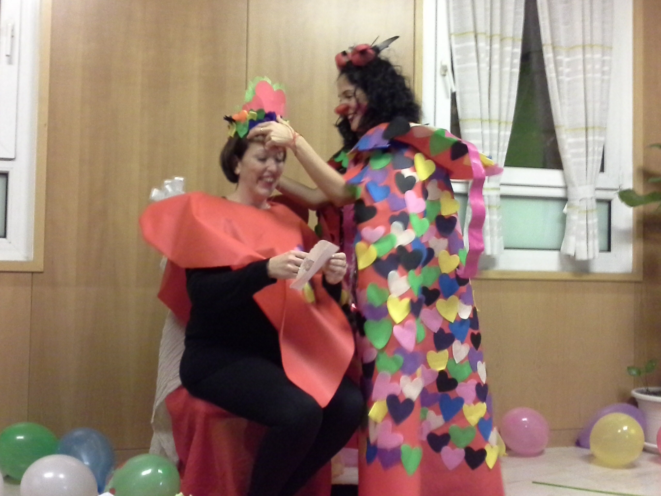 Ellas se vistieron de Corazones, llenaron el suelo de lluvia de Corazones al pasar y le hicieron a Chiquitina una capa increíble con un cetro también cosido de corazones y una corona y regalos y ellas le danzaron los cuatro elementos y luego se convirtieron en animales, le leyeron poesías que habían escrito para ellas, y se sintió tan querida sin que ni tan siquiera la conociesen.