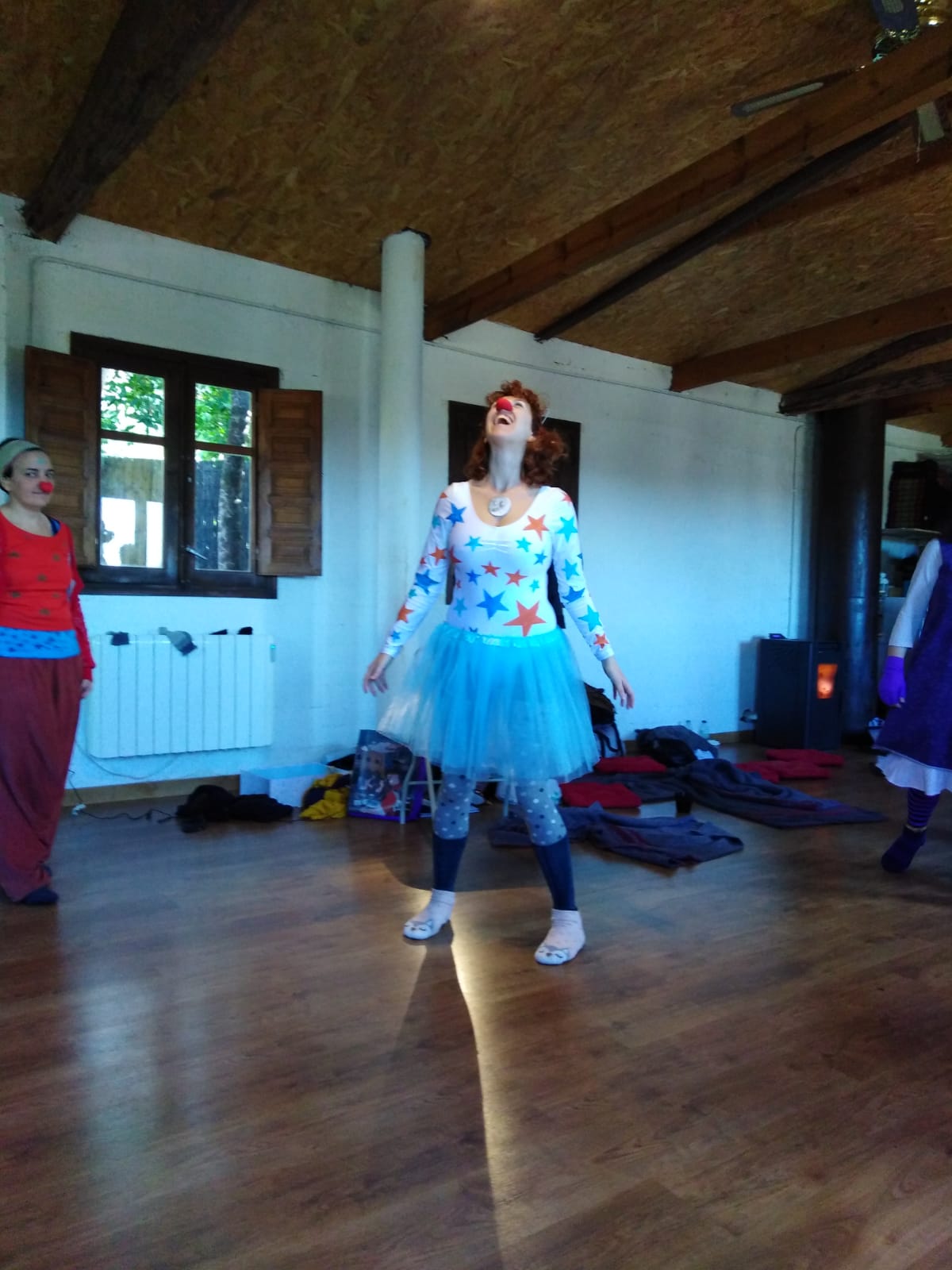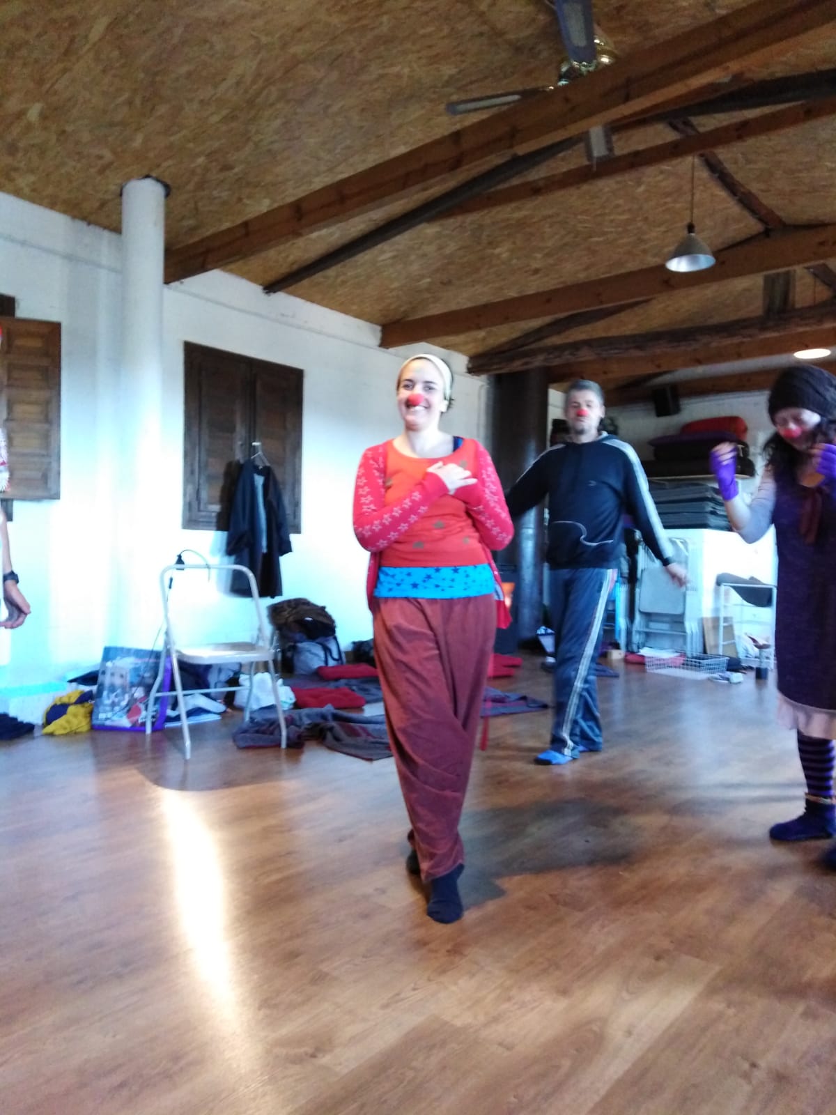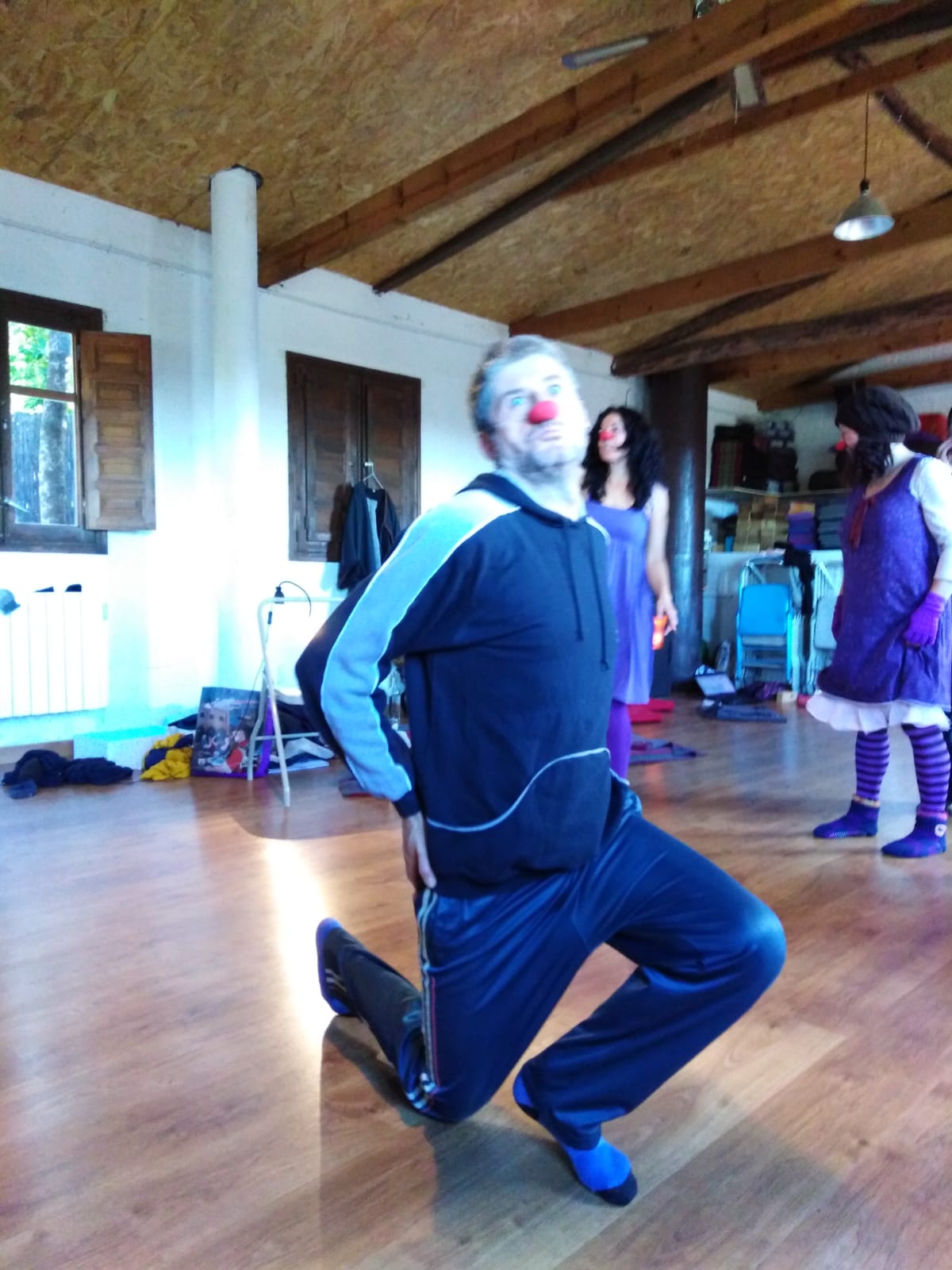 Ejercicios de Danza, de teatro de improvisación e improvisaciones desde los payasos, que van dejando que esa expresión de nosotros vaya apareciendo sin condicionamientos.