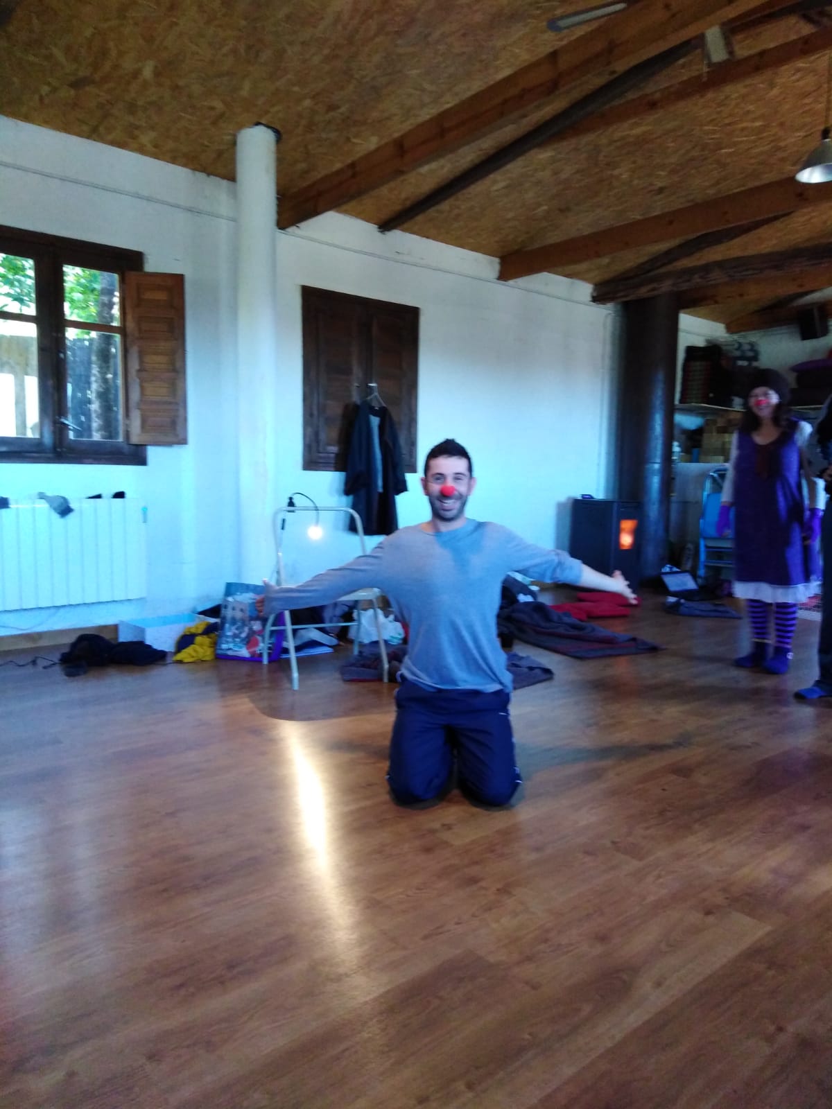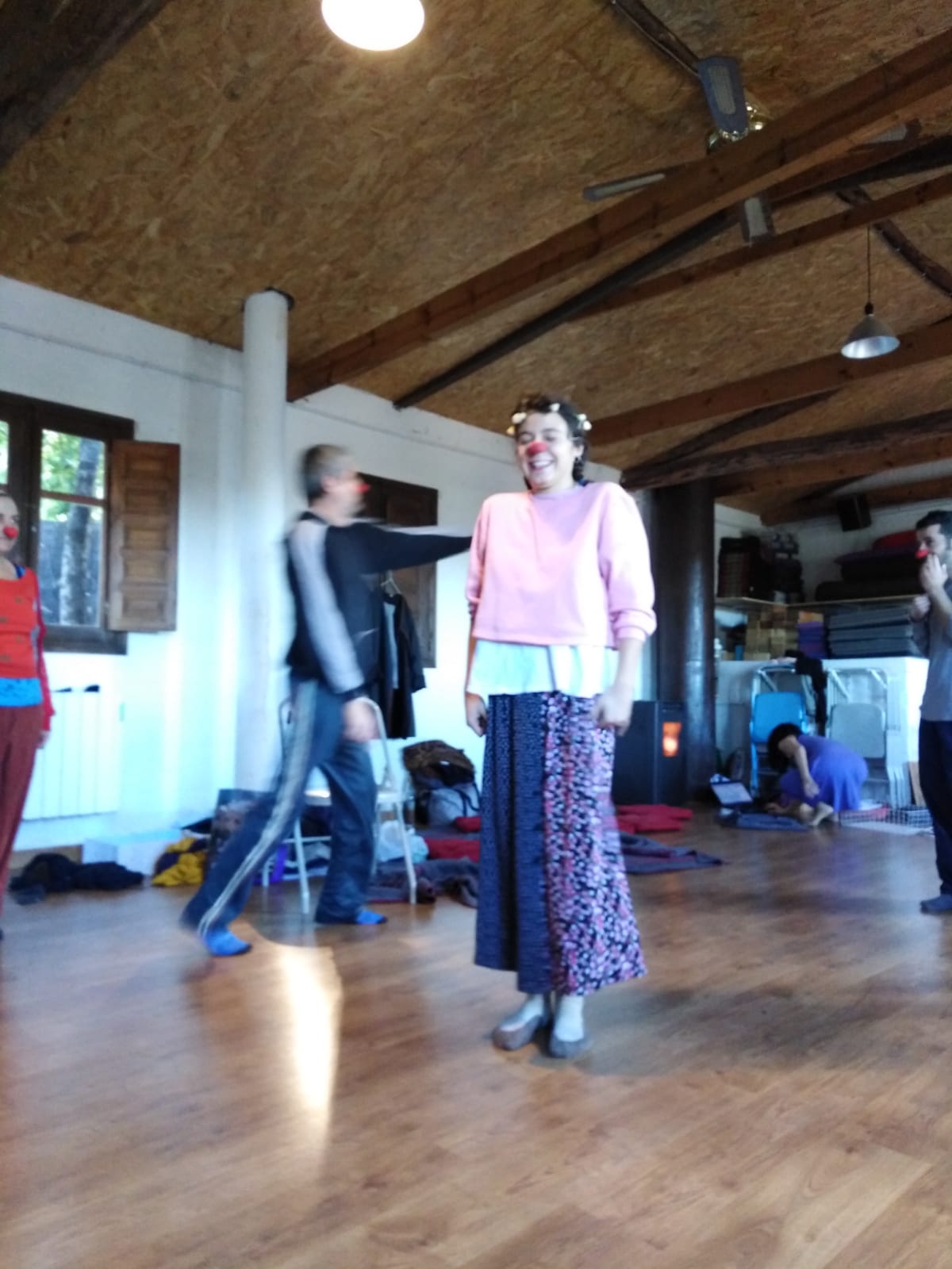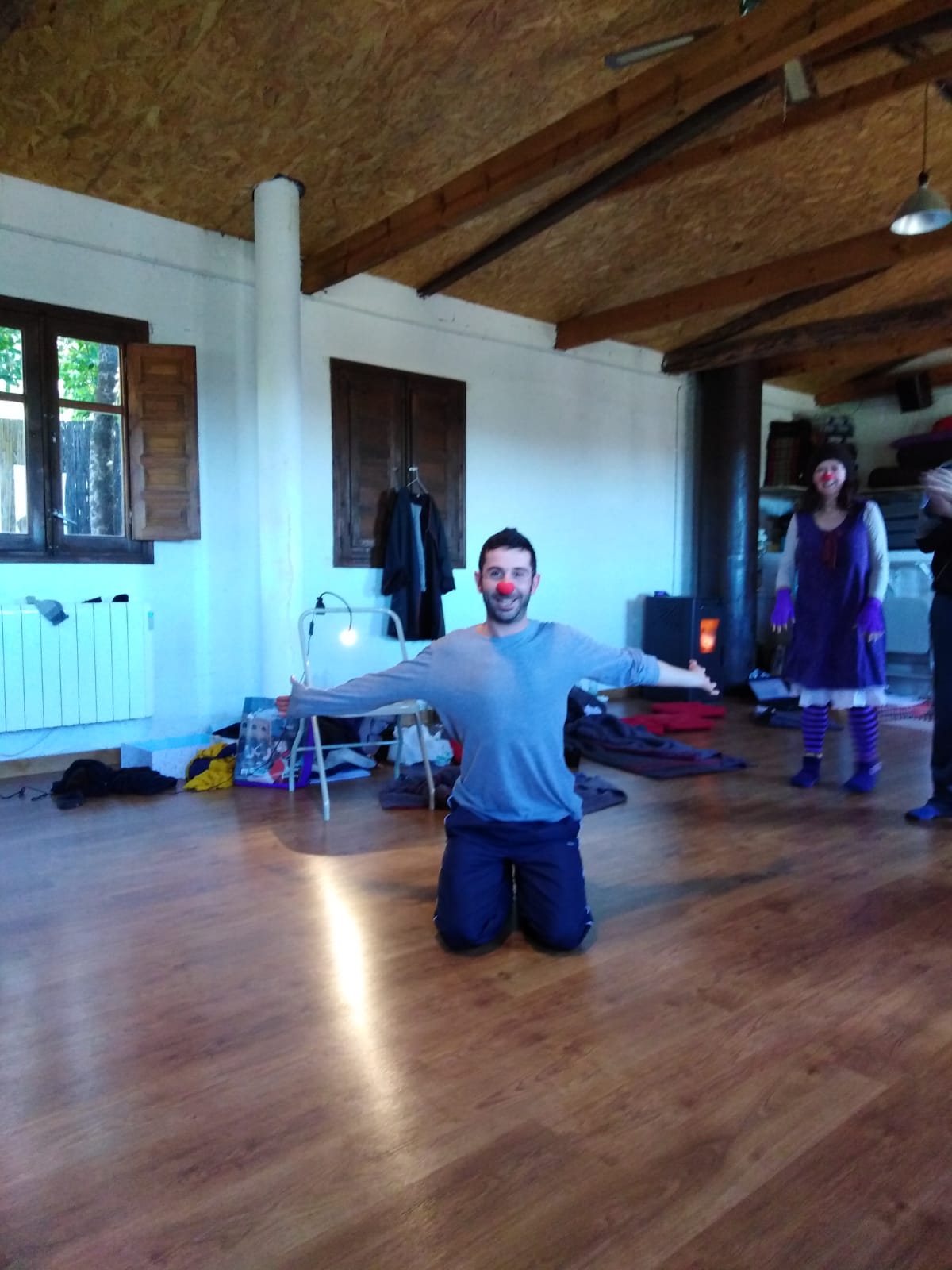 Ejercicios de Danza, de teatro de improvisación e improvisaciones desde los payasos, que van dejando que esa expresión de nosotros vaya apareciendo sin condicionamientos.