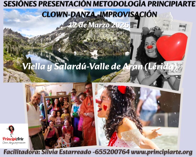 METODOLOGÍA PRINCIPIARTE (CLOWN, DANZA, IMPROVISACIÓN) UN ENFOQUE TERAPÉUTICO DE LA EXPRESIÓN ARTÍSTICA 12 de Marzo 2026 Vielha y Salardú -Valle de Arán (Lérida) Muy contentas Chiquitina y yo, de poder realizar esta sesión de Presentación de nuestra metodología PrincipiArte, en esta preciosa ciudad y en este mágico Valle de Arán. Ilusionadas de transmitir nuestro trabajo […]